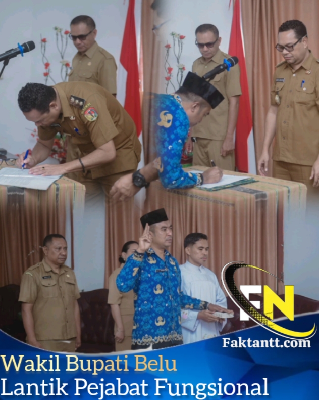 Atambua, faktantt .Com – Wakil Bupati Belu, Vicente Hornai Gonsalves, ST, memimpin langsung prosesi Pelantikan Pejabat Fungsional atas nama Julio El Emerson Klau, SST, di Ruang Kerja Wakil Bupati Belu, Senin (14/07/2025).