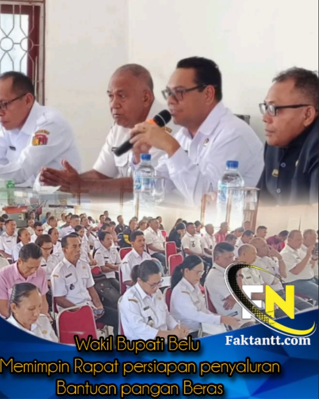 Atambua, faktantt. Com – Wakil Bupati Belu, Vicente Hornai Gonsalves, ST., memimpin rapat koordinasi persiapan penyaluran bantuan pangan beras periode Juni-Juli 2025, Rabu 16 Juli 2025. Rapat yang diselenggarakan di Aula Dinas Pertanian Kabupaten Belu ini menekankan pentingnya validasi data penerima manfaat agar bantuan tepat sasaran dan mencapai mereka yang paling membutuhkan.