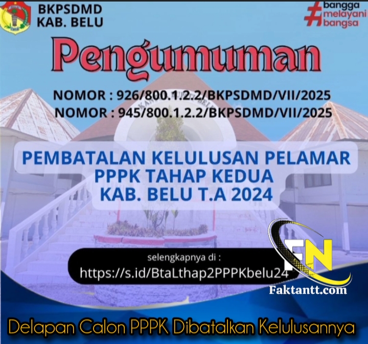 Pengumuman pembatalan tersebut dipublikasikan melalui laman Facebook Badan Kepegawaian dan Pengembangan Sumber Daya Manusia Daerah (BKPSDM) Kabupaten Belu pada Rabu, 23 Juli 2025.