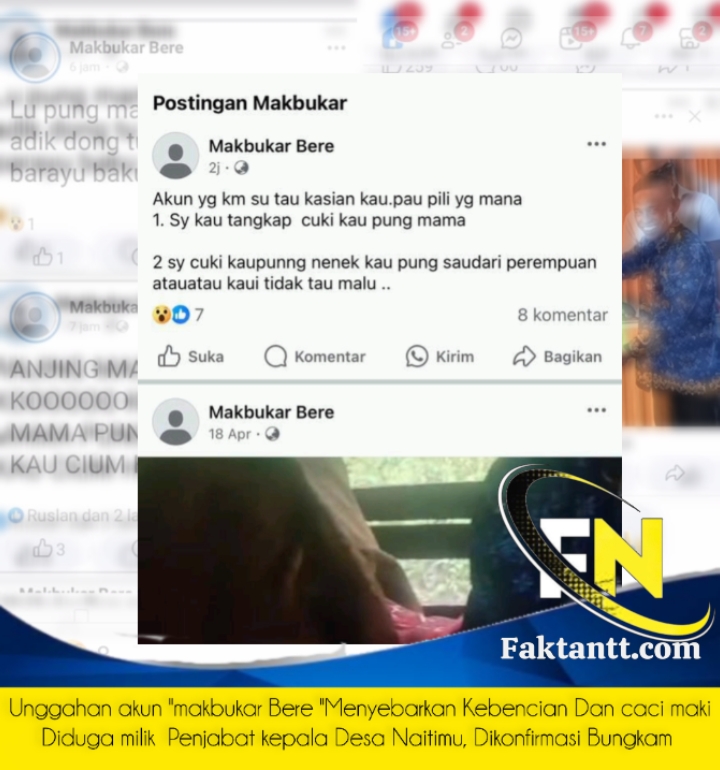 Postingan-postingan di akun “Makbukar” mengandung caci maki dan hinaan pribadi. Konten negatif yang berulang ini menimbulkan pertanyaan serius tentang etika kepemimpinan dan menimbulkan ketegangan sosial di Desa Naitimu.