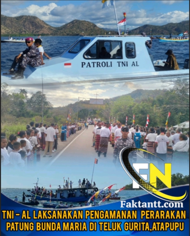 Belu, faktantt. Com– Personel Pos Angkatan Laut (Posal) Atapupu, Kabupaten Belu, Nusa Tenggara Timur (NTT), berperan aktif mengamankan perarakan Patung Bunda Maria dalam kegiatan keagamaan bertajuk “Ina Maria Naifeto Lalean”. Perarakan yang diikuti sekitar 600 umat Katolik ini berlangsung pada Kamis, 31 Juli 2025, pukul 10.30 WITA, berawal dari Gereja Katolik Dominikus Lakafehan. Kegiatan keagamaan ini dipimpin oleh Romo Goris Dudi Pr.