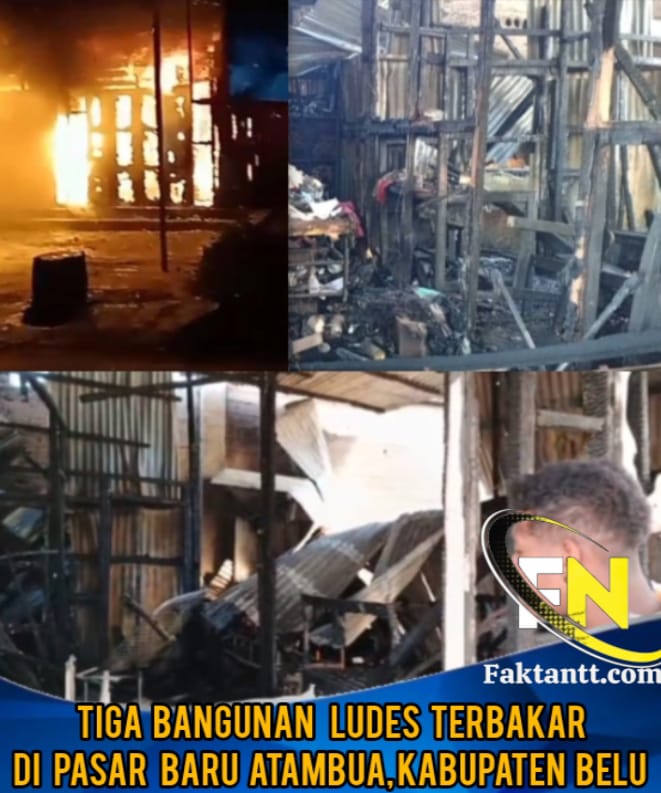 Atambua, faktantt. com – Kebakaran hebat melanda kawasan Pasar Baru Atambua, tepatnya di Jalan RA Kartini, Kelurahan Berdao, Kecamatan Atambua Barat, pada Kamis (21/8/2025) dini hari sekitar pukul 01.00 WITA. Api melalap tiga unit usaha, yaitu dua salon (Salon Ani dan Salon Mentari) serta satu konter HP (Quin Sel).