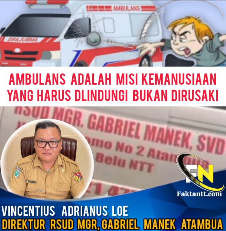 “Pelaku harus diproses secara hukum yang berlaku, karena ambulans adalah misi kemanusiaan yang harus dilindungi bukan dirusaki,” tegas Vincentius Adrianus Leo dalam pernyataannya kepada media faktantt.com,Jumat (22/8/25)