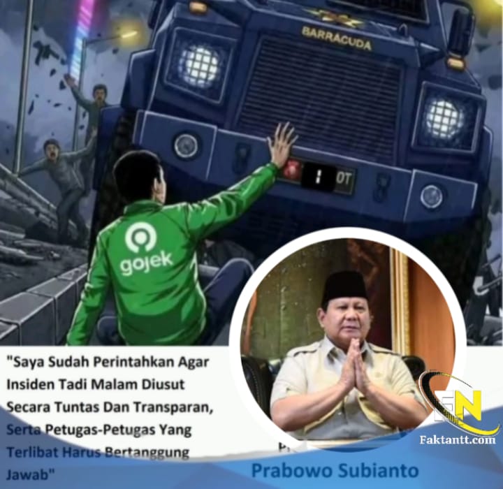 Jakarta, faktantt.Com – Presiden terpilih Republik Indonesia, Prabowo Subianto, menyampaikan rasa duka dan keprihatinan mendalam atas meninggalnya seorang pengemudi ojek online (ojol) bernama Affan Kurniawan. Affan menjadi korban dalam insiden yang terjadi saat demonstrasi yang berujung anarkis pada Kamis (28/8) malam.