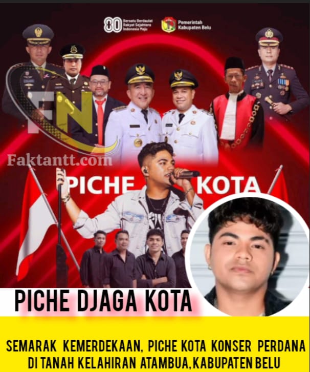 Atambua, faktantt. Com – Petrus Yohannes Debrito Armando Djaga Kota, atau yang lebih dikenal dengan nama panggung Piche Kota, siap menggelar konser akbar yang sangat dinantikan di Lapangan Umum Simpang Lima Atambua, Kabupaten Belu. Konser bertajuk “Closing Ceremony Semarak Kemerdekaan” ini akan dilaksanakan pada Minggu, 31 Agustus 2025, pukul 18.30 WITA.