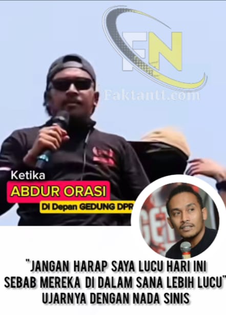 Dalam orasinya, Abdur melontarkan pernyataan yang langsung membakar semangat para demonstran. “Jangan harap saya lucu hari ini, karena mereka yang di dalam lebih lucu,” ujarnya dengan nada sinis namun tegas. Ungkapan tersebut disambut sorak sorai riuh dari massa aksi yang memadati area depan Gedung DPR.