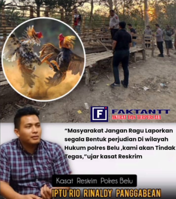 Belu, faktantt. Com – Kepolisian Resor (Polres) Belu merespons cepat keresahan masyarakat dengan membongkar lokasi yang diduga menjadi tempat perjudian ayam di Sukabitetek, Desa Leontolu, Kecamatan Raimanuk, Kabupaten Belu, Nusa Tenggara Timur, Jumat (5/9/2025).