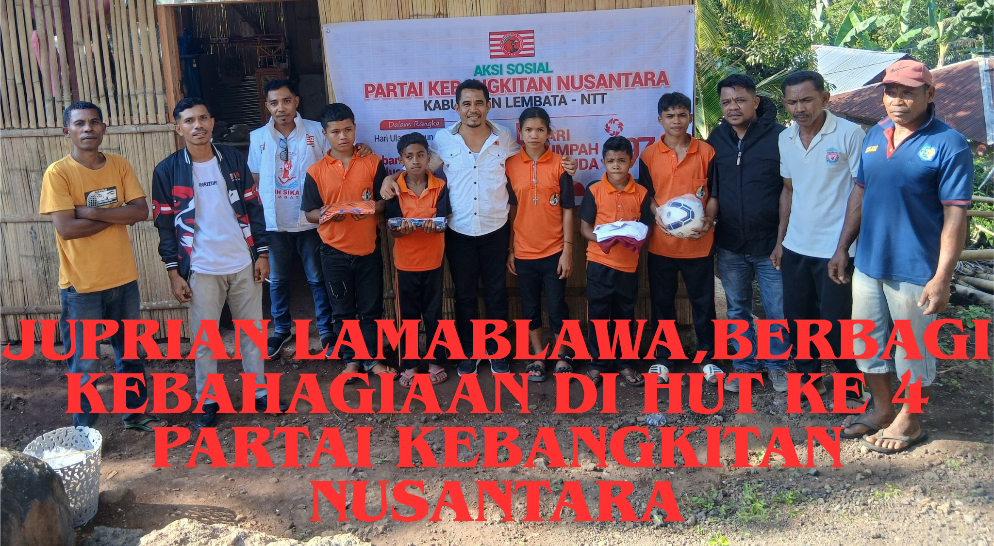 Dihubungi media ini, Ketua Partai Kebangkitan Nusantara Kabupaten Lembata Juprian Lamablawa menyampaikan bahwa dalam Rangkah HUT Partai yang bertepatan dengan HUT Sumpah Pemuda PKN Lembata melakukan giat sosial di dua tempat berbeda, ungkap Lamabelawa.