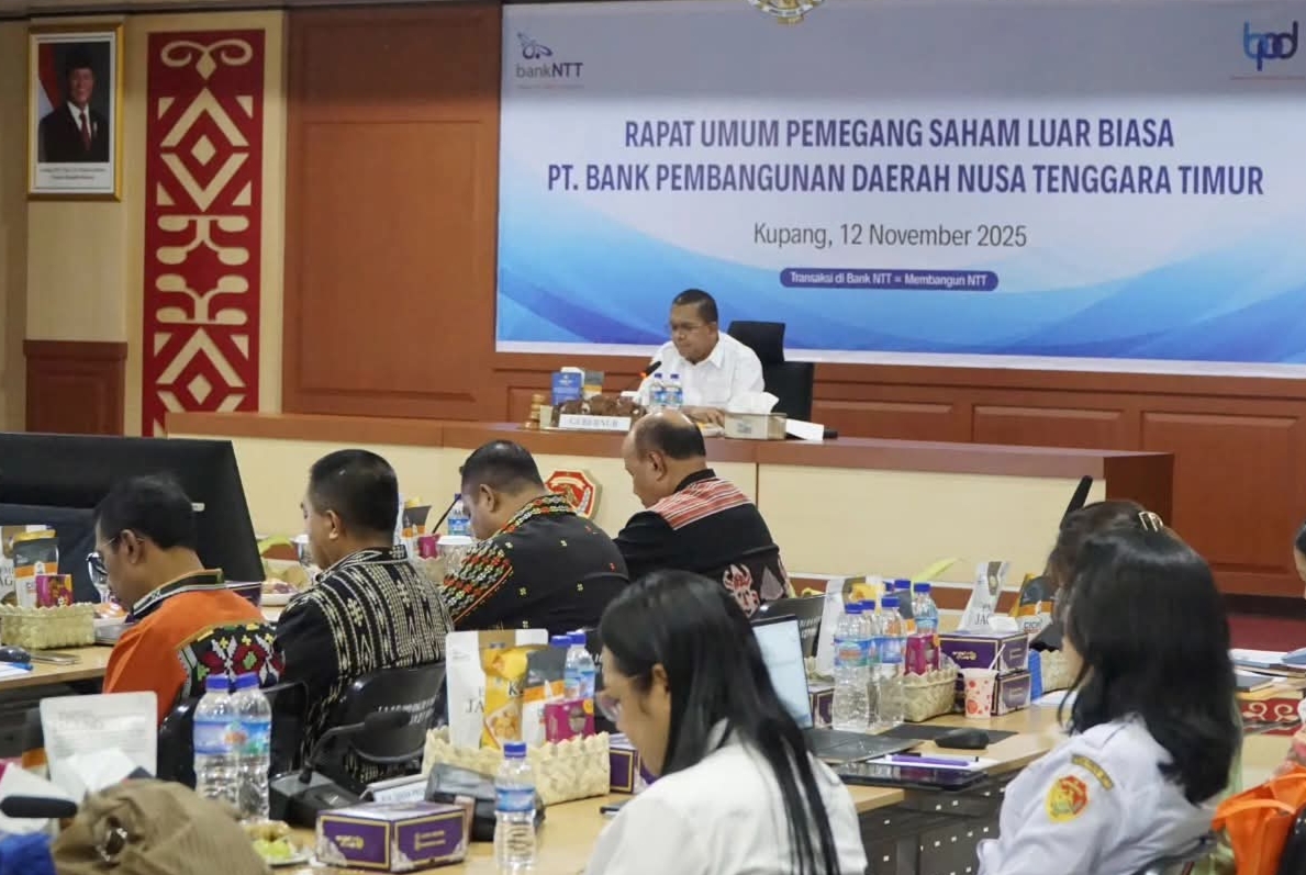 Kupang, faktantt.com – Rapat Umum Pemegang Saham (RUPS) Luar Biasa Bank NTT yang dipimpin langsung oleh Gubernur NTT, Emanuel Melkiades Laka Lena selaku pemegang saham pengendali, menetapkan jajaran direksi baru. Rapat berlangsung lancar dan penuh semangat kebersamaan, menandai langkah baru dalam memperkuat tata kelola dan meningkatkan kinerja Bank NTT.