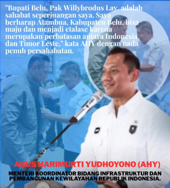 “Bupati Belu, Pak Willybrodus Lay, adalah sahabat seperjuangan saya. Saya berharap Atambua, Kabupaten Belu, bisa maju dan menjadi etalase karena merupakan perbatasan antara Indonesia dan Timor Leste,” kata AHY dengan nada penuh persahabatan.