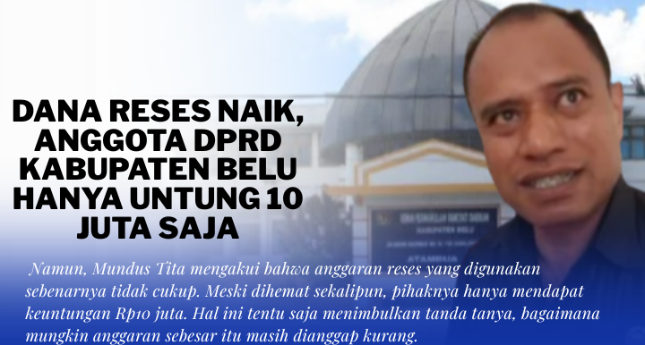 Pengakuan Mundus Tita ini menjadi momentum penting untuk mengevaluasi efektivitas kegiatan reses DPRD Belu. Jangan sampai dana reses yang besar hanya menjadi ajang bagi-bagi keuntungan, tanpa memberikan manfaat yang signifikan bagi masyarakat.